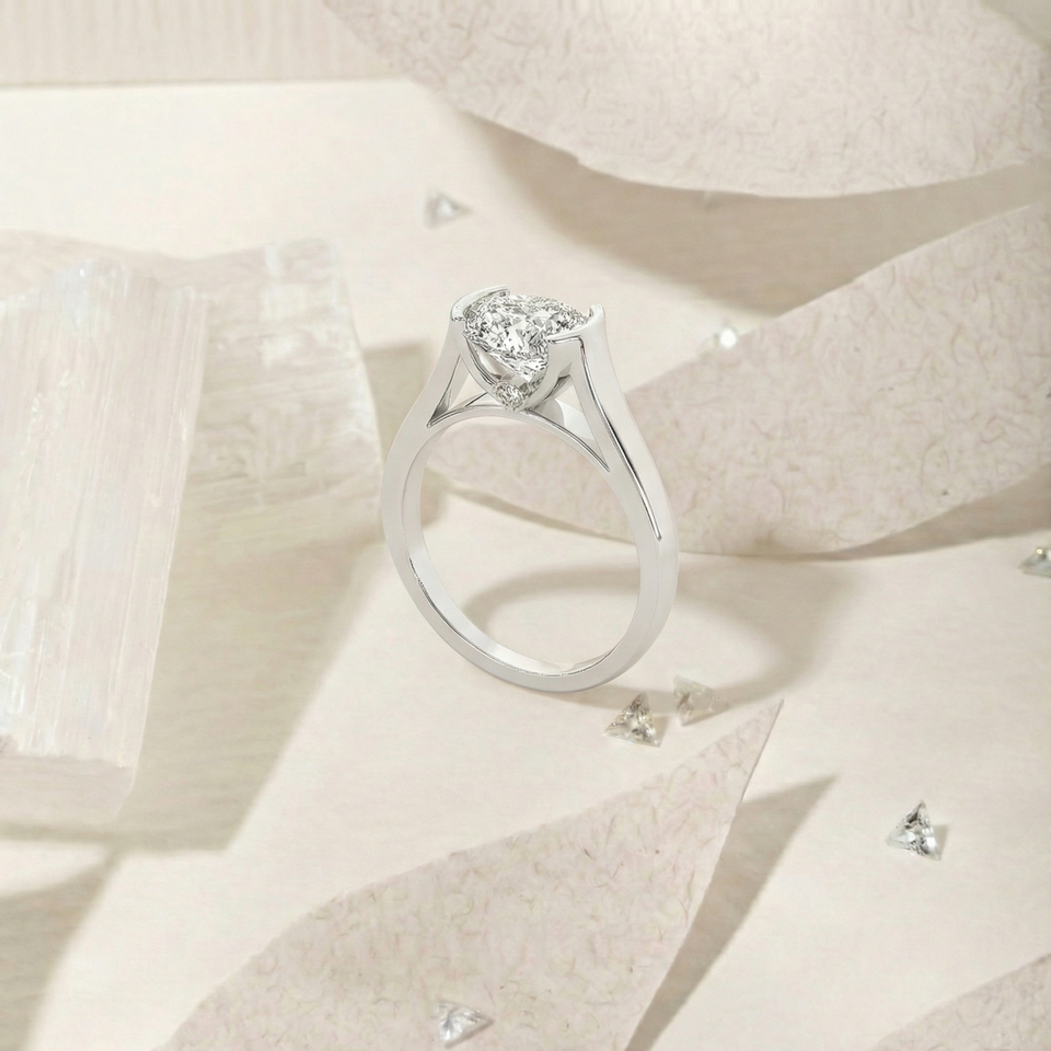 แหวนเพชรเลี้ยงในห้องปฏิบัติการน้ำหนักเบา 2.04 กะรัต ทอง 14K 10K ทรงกลมเจียระไนแบบบริลเลียนท์ ดีไซน์โดดเด่น หรูหรา สง่างาม สำหรับผู้หญิง