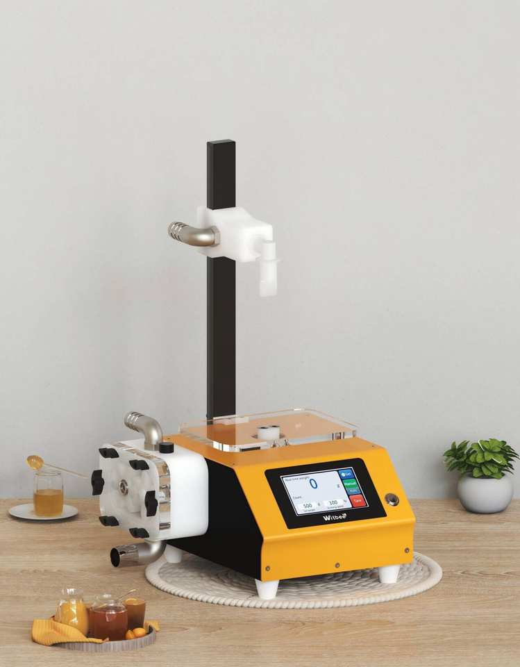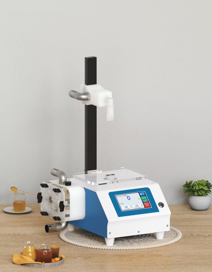 เครื่องบรรจุของเหลวแบบกึ่งอัตโนมัติ น้ำหนักเบา 9 กก. ความแม่นยำสูง พร้อมหน้าจอสัมผัส สำหรับบรรจุน้ำผึ้ง เจล ของเหลวข้นหนืด และน้ำมัน