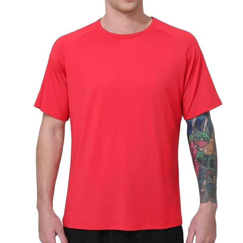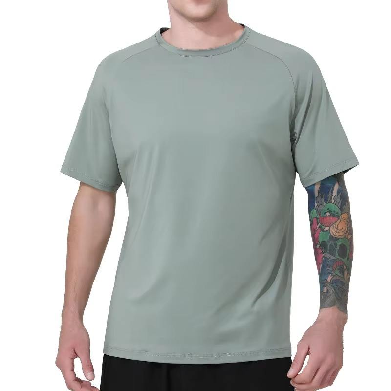 เสื้อโพลีเอสเตอร์แบบซับเหงื่อสำหรับผู้ชายเสื้อสำหรับใส่ไปยิมฟิตเนสแบบลำลองน้ำหนักเบา
