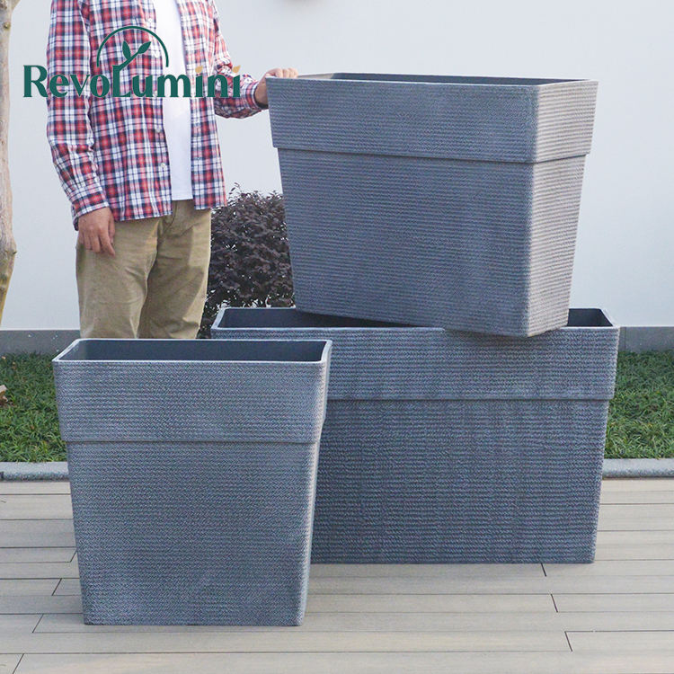กระถางดอกไม้ทรงสี่เหลี่ยมน้ำหนักเบาสำหรับปลูกต้นไม้กลางแจ้งกระถางต้นไม้หนาเหมือนหินขนาดใหญ่ที่ปลูกต้นไม้พลาสติก