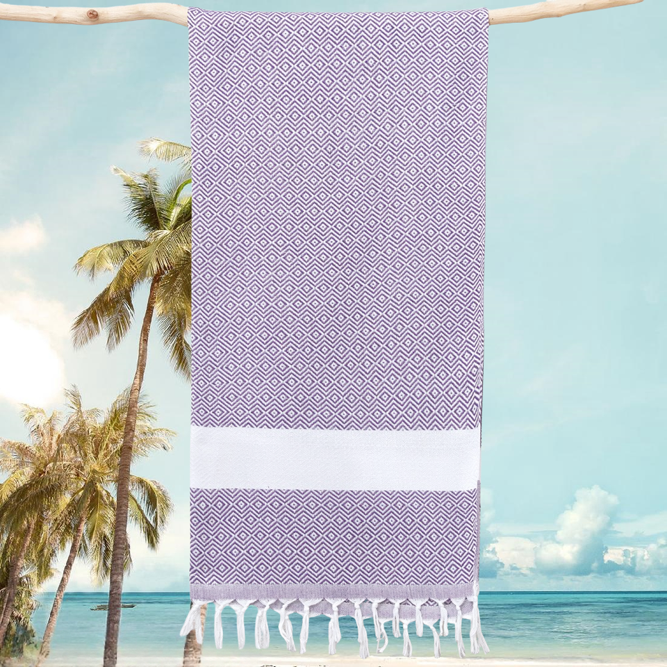 ผ้าขนหนูชายหาดผ้าฝ้ายตุรกีแบบพับได้ผ้านุ่มและแห้งเร็วพร้อมพู่สำหรับฤดูร้อน