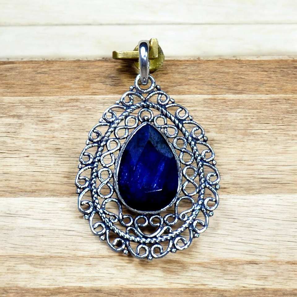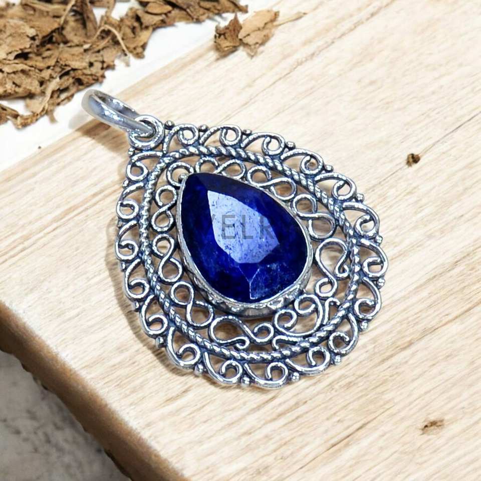 จี้เงินแท้ 925 น้ำหนักเบา ประดับพลอยแซฟไฟร์ทรงลูกแพร์เจียระไน