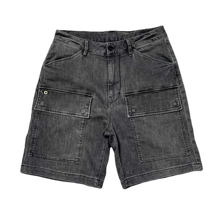 กางเกงยีนส์ขาสั้นผู้ชายสีอ่อน ย้อมสีแบบบล็อก ผ้าฝ้าย 100% กางเกงยีนส์ขาสั้นผู้ชายหลายกระเป๋า กางเกงยีนส์ขาสั้นผู้ชายทรงสกินนี่