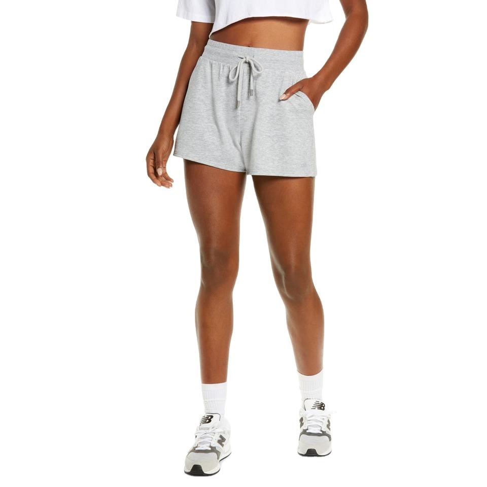 กางเกงขาสั้นสีเทาสำหรับผู้หญิงกางเกงขาสั้นออกกำลังกายผ้าฝ้ายแบบลำลอง