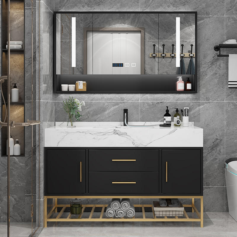 โต๊ะเครื่องแป้งห้องน้ำขนาด30นิ้วพร้อมอ่างเซรามิกสีดำและชั้นวางแบบปรับได้ (KD-PACKING)