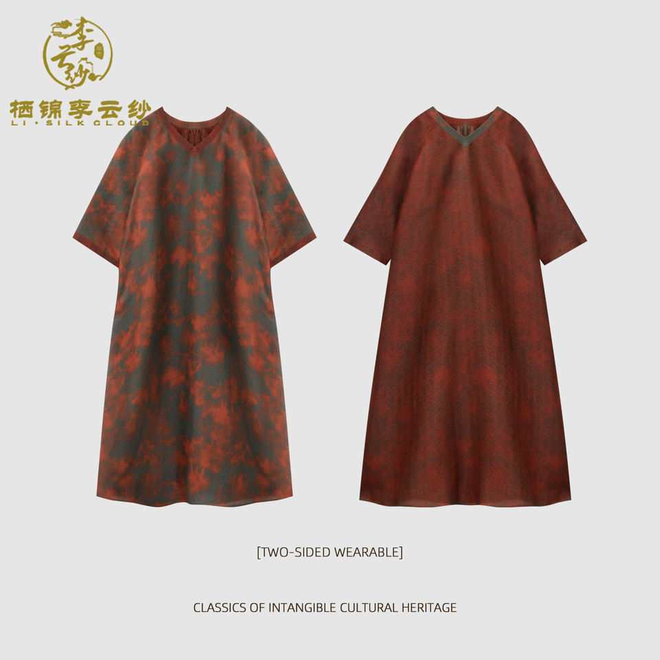 ผ้าโปร่งลายดอกกุหลาบหรูหราเบาๆสำหรับผู้หญิงผ้าแจ็คการ์ดผ้าไหมหม่อน100% ยาวถึงพื้นสไตล์วินเทจ