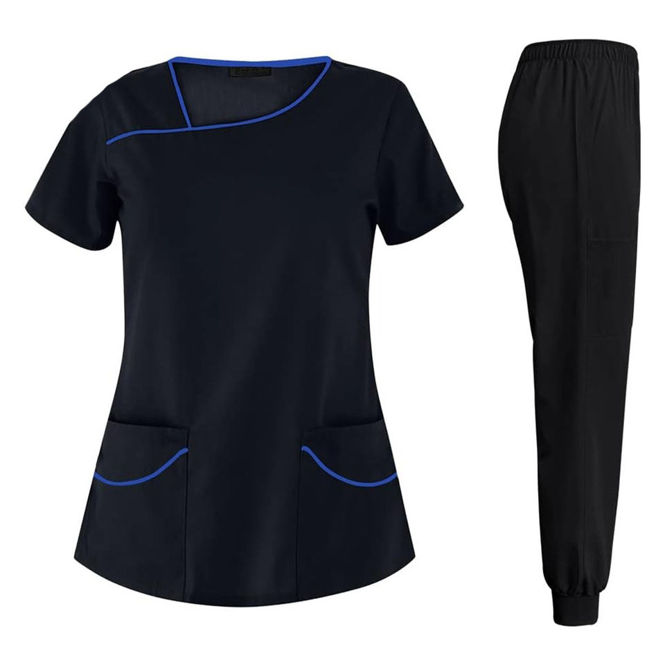 ชุดสครับผู้หญิงเนื้อผ้ายืดหยุ่นเบาสบาย ออกแบบมาเพื่อการสวมใส่ที่นุ่มสบาย ระบายอากาศได้ดี ทนทานยาวนาน ยืดหยุ่น คล่องตัว สวมใส่สบาย เหมาะสำหรับโรงพยาบาล