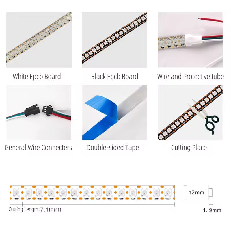 ไฟแถบ LED RGB พร้อมวงจรรวมแบบดิจิตอลเดี่ยว ไฟแถบ LED อัจฉริยะ RGB