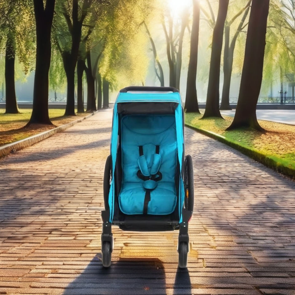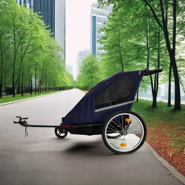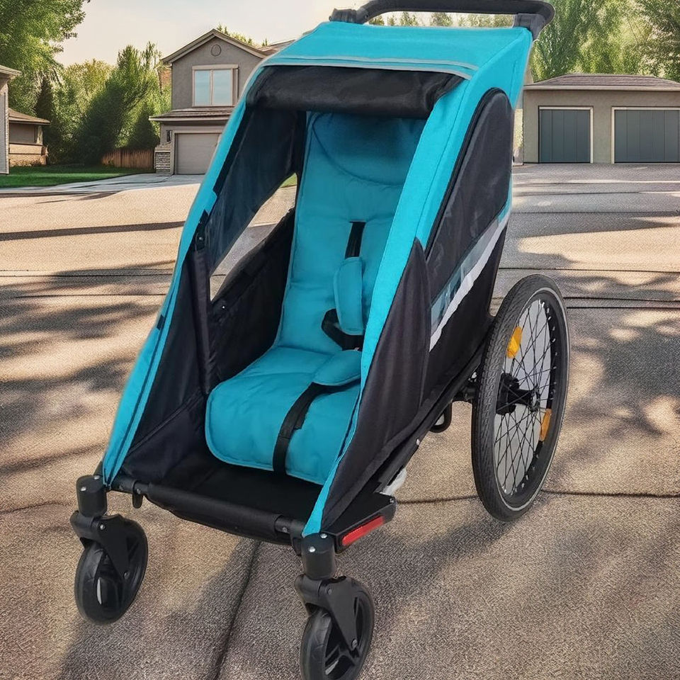 รถพ่วงจักรยานแบบโครงน้ำหนักเบาพร้อมระบบกันสะเทือนอิสระ รับน้ำหนักได้สูงสุด 28 กก. สำหรับเด็ก