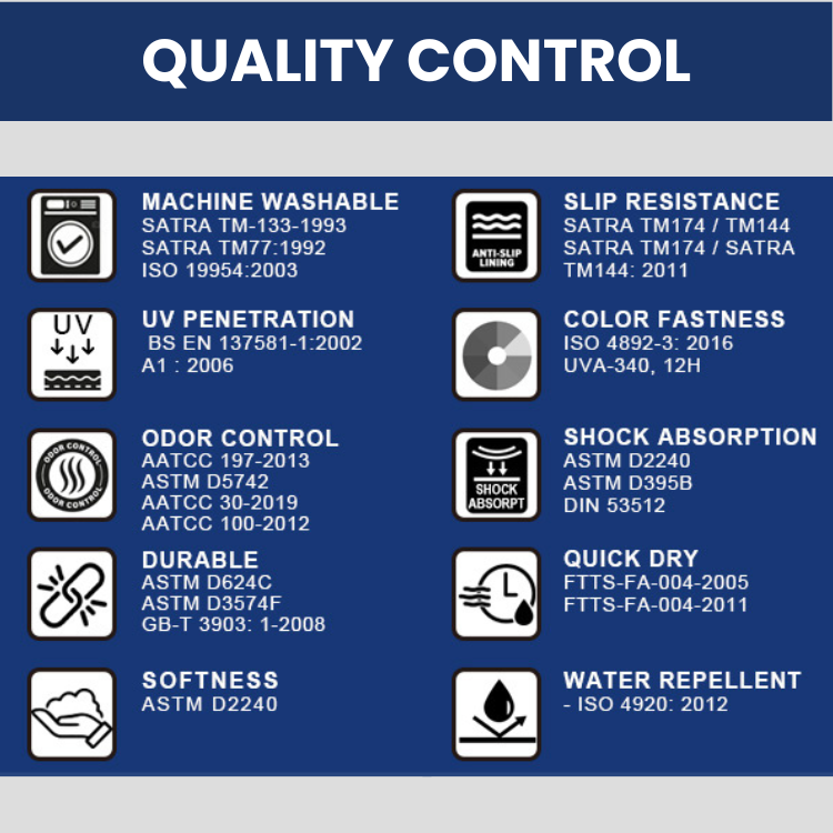 ป้องกันกลิ่น, น้ำหนักเบา, ระบายอากาศ, กันลื่น, แห้งเร็ว, Water Repellent, Anti UV, Dirt Proof