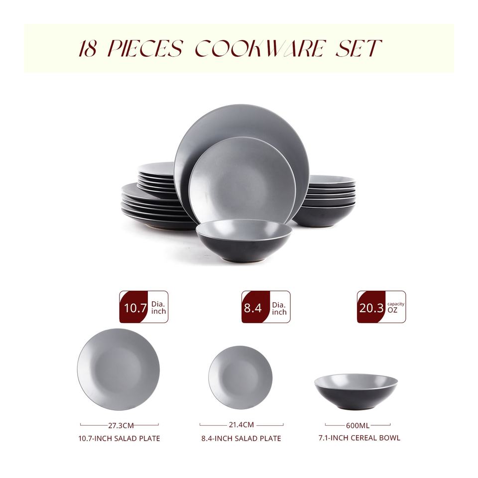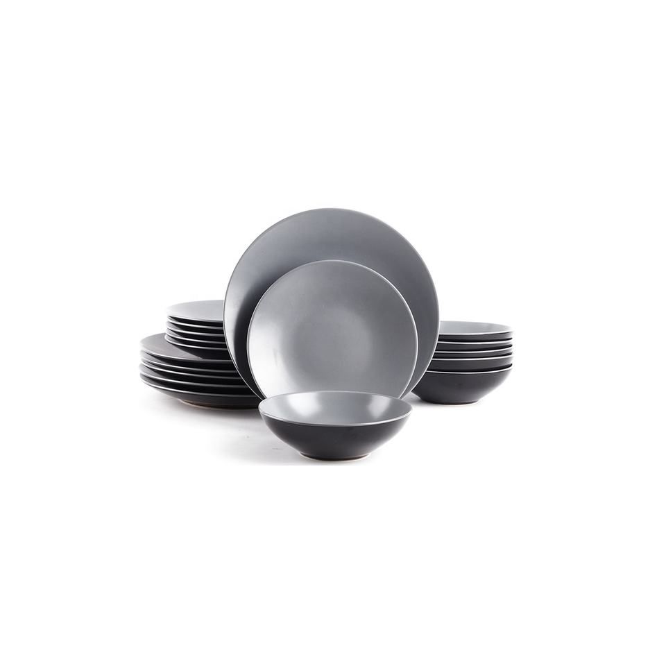 ชุดเซรามิกสโตนแวร์สีเทาอ่อนสไตล์โมเดิร์น จานเซรามิกดีไซน์เรียบง่ายสร้างสรรค์ ชามและแก้วเซรามิกสไตล์ตะวันตก ชุดอาหารค่ำสุดหรู