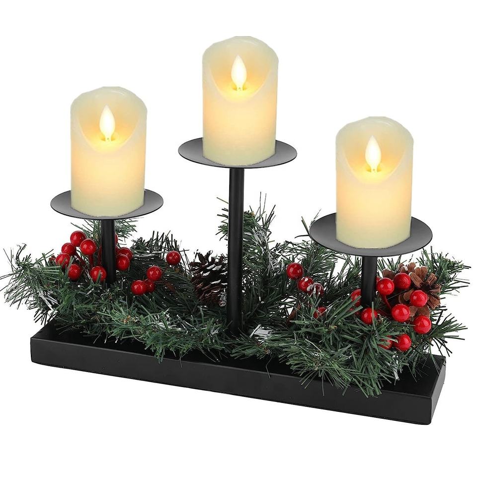 เชิงเทียนสำหรับตกแต่งโต๊ะวางเทียนแบบ3หัวสีดำดีไซน์ใหม่2025