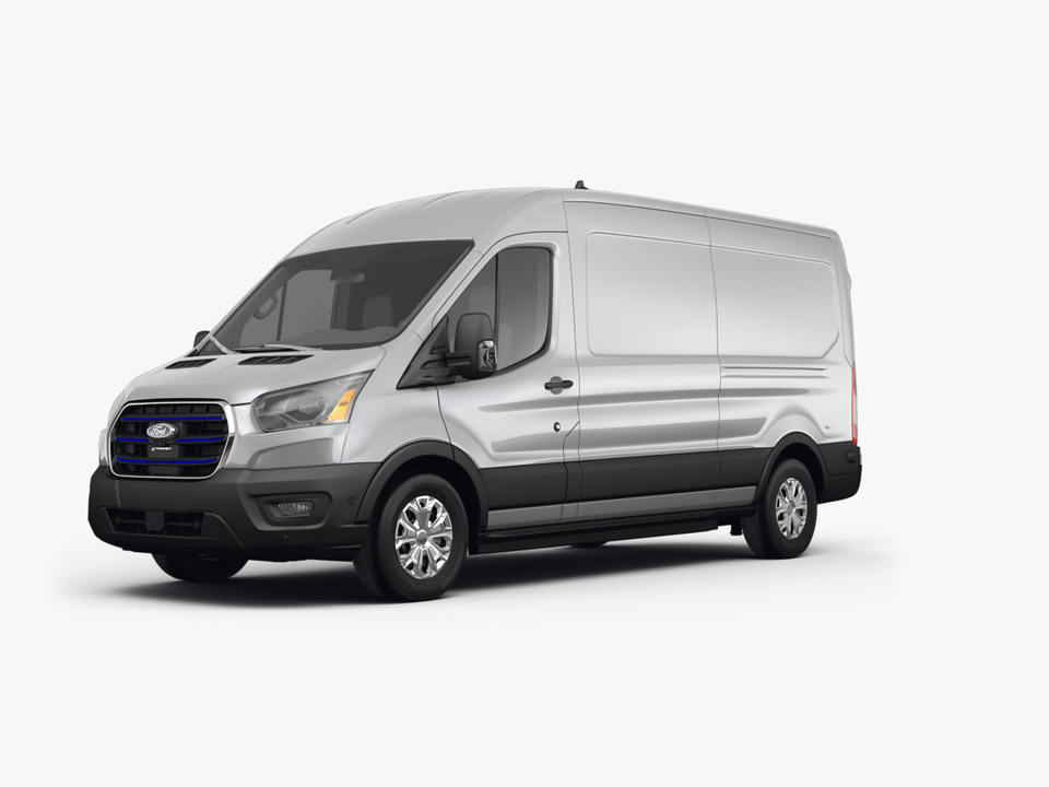 รถตู้บรรทุกสินค้า Ford E-Transit รุ่น T-350 ปี 2023 ขนาด 148 นิ้ว หลังคาขนาดกลาง น้ำหนักบรรทุกรวม 9500 ปอนด์ ขับเคลื่อนล้อหลัง สภาพดี ใช้งานน้อย