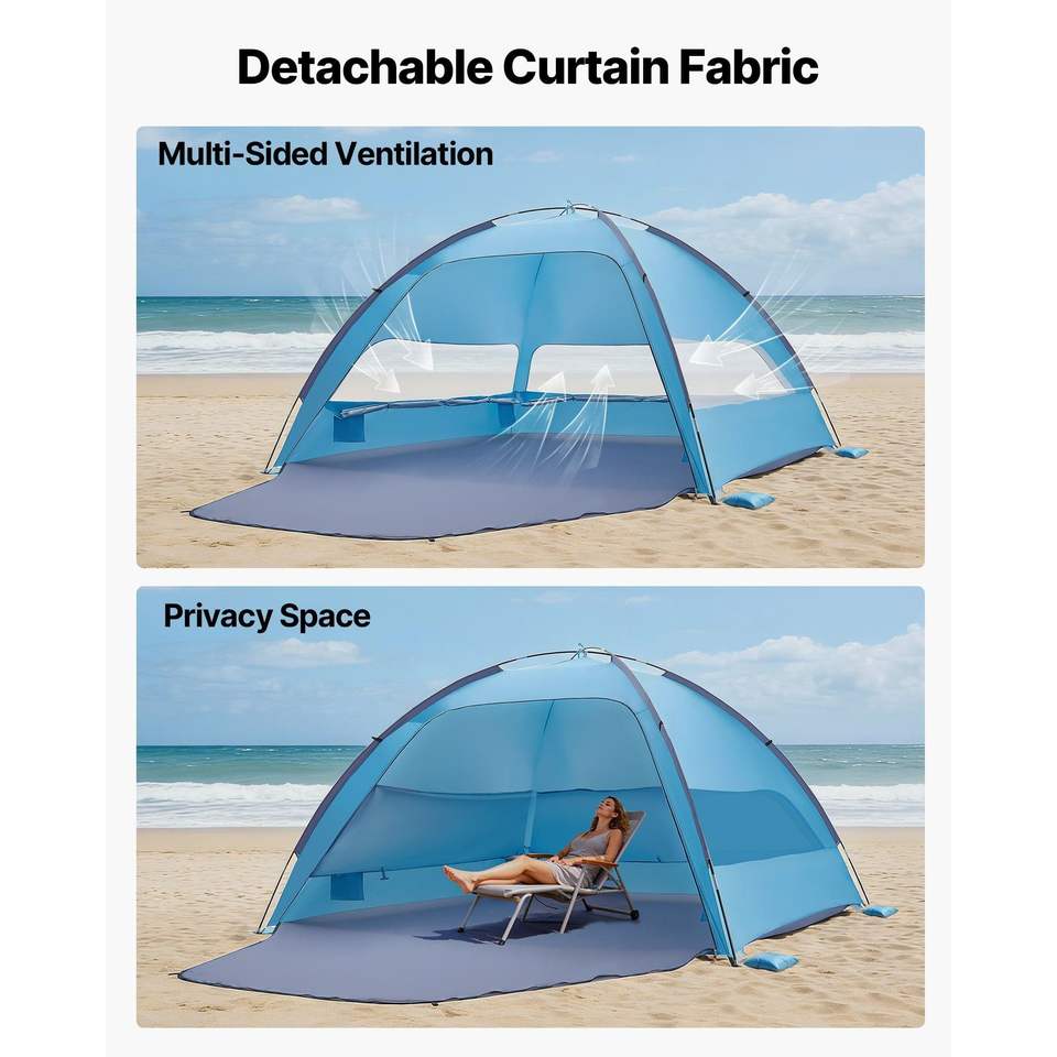 เต็นท์ชายหาดพกพา Lightwei สำหรับ 6 คน ป้องกันแสงแดด UPF 50+ พร้อมกระเป๋าหิ้ว ช่องเก็บของกันทราย และหลังคาบังแดด