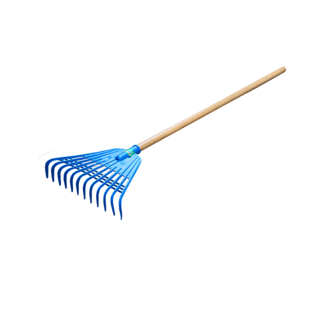 คราดสนามหญ้าพลาสติก12สีน้ำหนักเบาพร้อมที่จับไม้ดูดซับแรงกระแทกสำหรับการจัดเก็บในสวนได้ง่าย