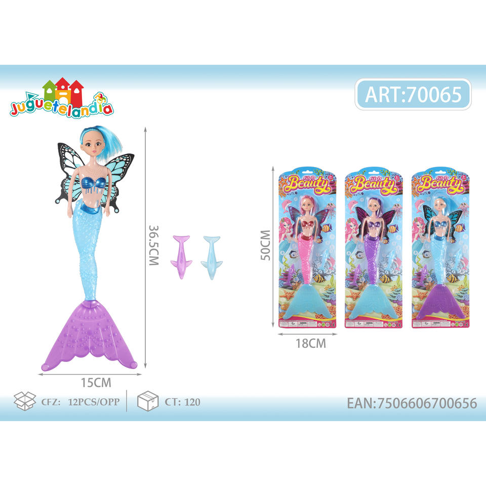 ผลิตภัณฑ์ตุ๊กตานางเงือกน้ำหนักเบา38ซม. มีปีกและปลาโลมา2ตัวตุ๊กตาน่ารัก
