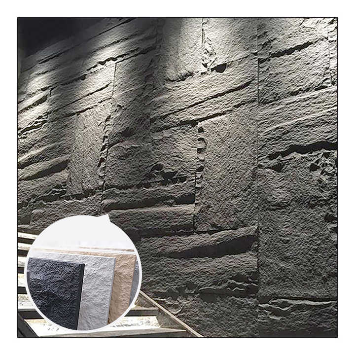แผ่นกระดานตกแต่งแผงผนังหินเทียมทำจากโพลียูรีเทน/PU ยืดหยุ่นได้สำหรับตกแต่ง3D น้ำหนักเบา
