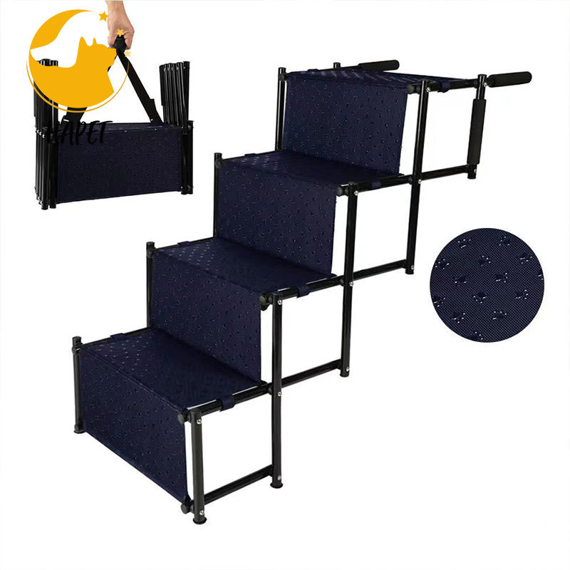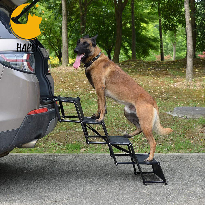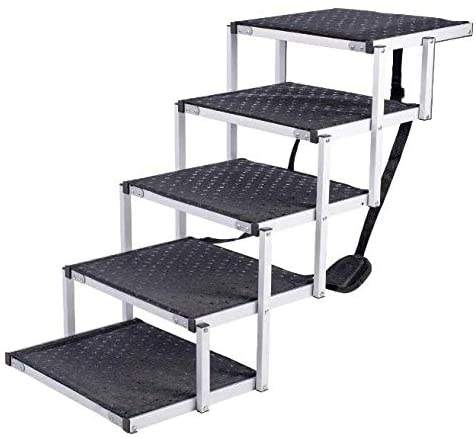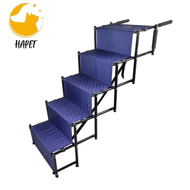 บันไดสัตว์เลี้ยง5ขั้นน้ำหนักเบากันลื่นพร้อมเทปจับเพิ่มเติมสำหรับรถบรรทุกรถ SUV ขนาดใหญ่และเตียงสูง