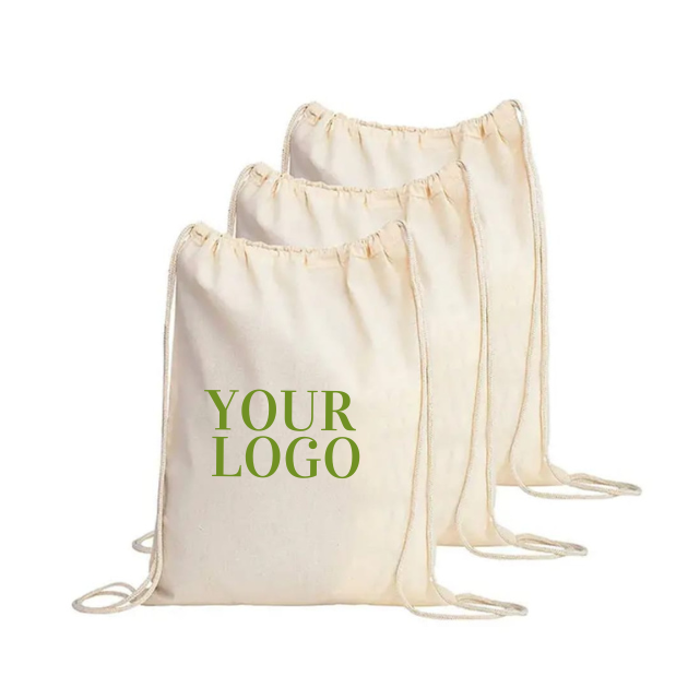 ถุงผ้าฝ้ายน้ำหนักเบา 6 ออนซ์ พร้อมเชือกผูก สำหรับโปรโมชั่น พร้อมโลโก้และขนาดตามสั่ง เหมาะสำหรับเก็บอาหารและสินค้าต่างๆ