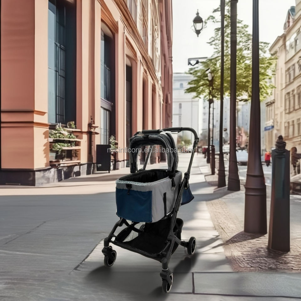 ตะกร้าใส่สัตว์เลี้ยงแบบพับได้ 4 ล้อ ทำจากอะลูมิเนียมน้ำหนักเบา พร้อมโช้คอัพและดีไซน์ที่ได้รับสิทธิบัตร สำหรับการเดินทางของสัตว์เลี้ยงขนาดเล็ก