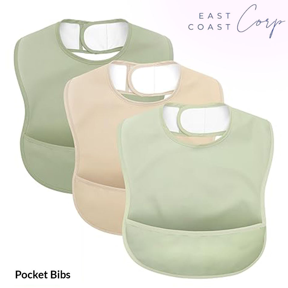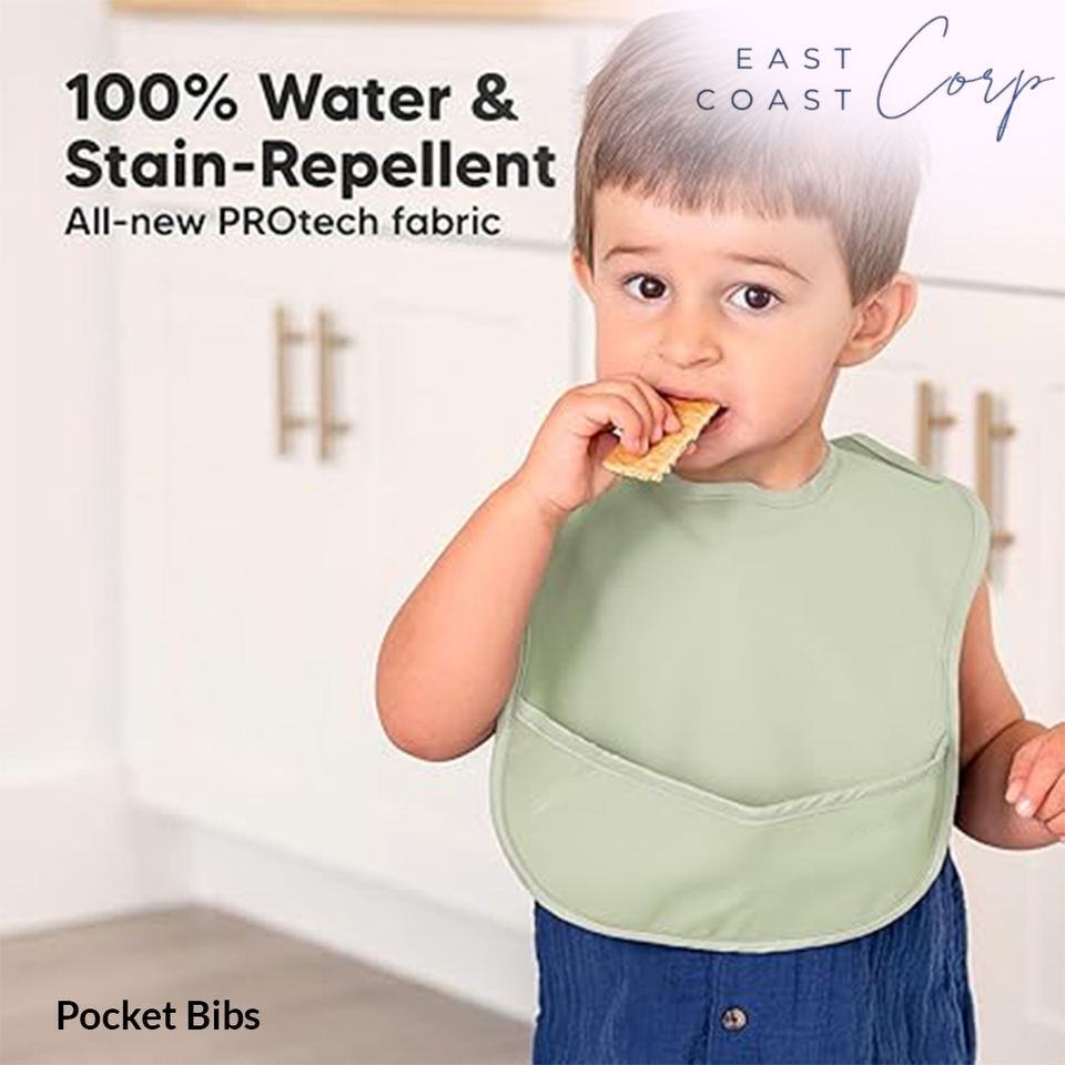 ผ้ากันเปื้อนป้อนอาหารเด็กน้ำหนักเบาพร้อมกระเป๋ากันเปื้อนเกรดอาหารและทำความสะอาดง่าย