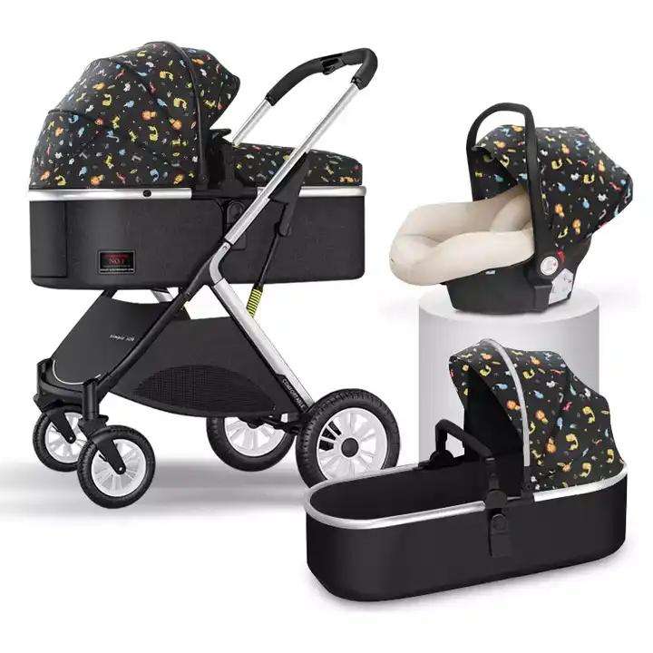รถเข็นเด็กน้ำหนักเบาพร้อมล้อกันแรงกระแทกและตะกร้าที่นั่งในรถสำหรับเด็กทารก