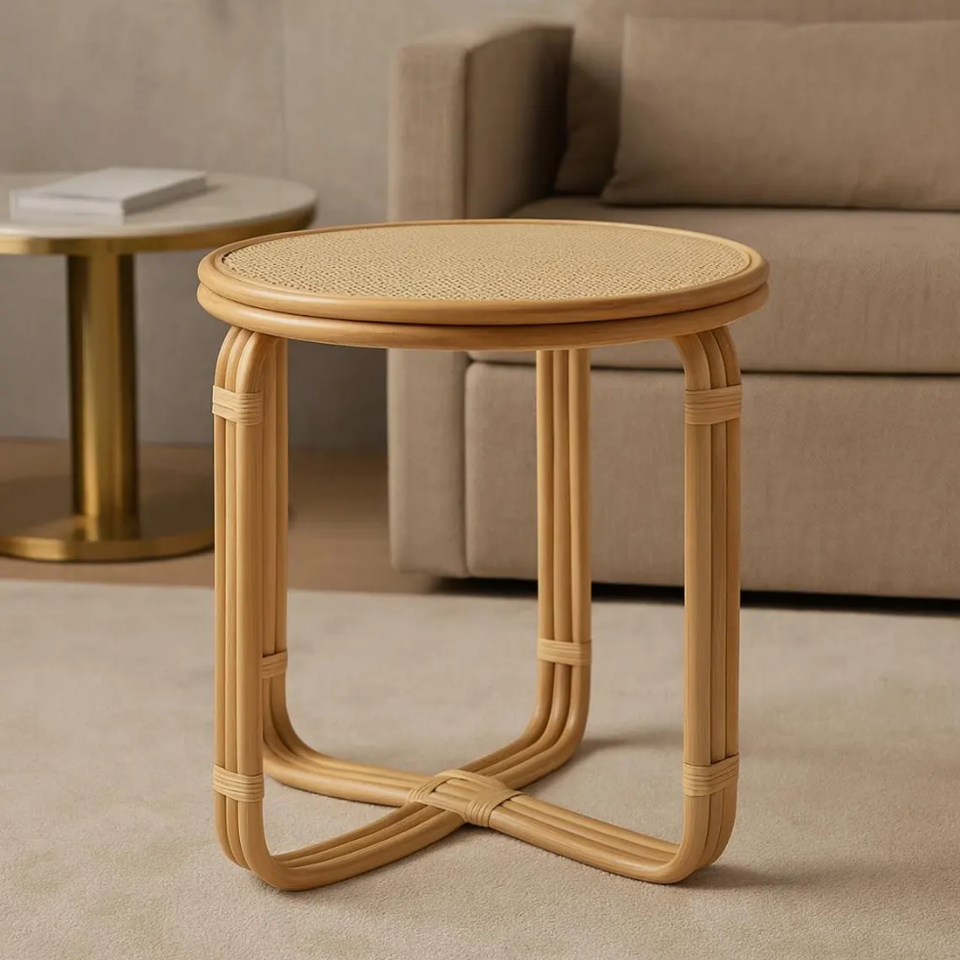 โต๊ะข้างทรงกลมทำจากไม้ไผ่น้ำหนักเบา / โต๊ะอ่านหนังสือ หรือ เก้าอี้อเนกประสงค์สำหรับการตกแต่งภายในสไตล์มินิมอล