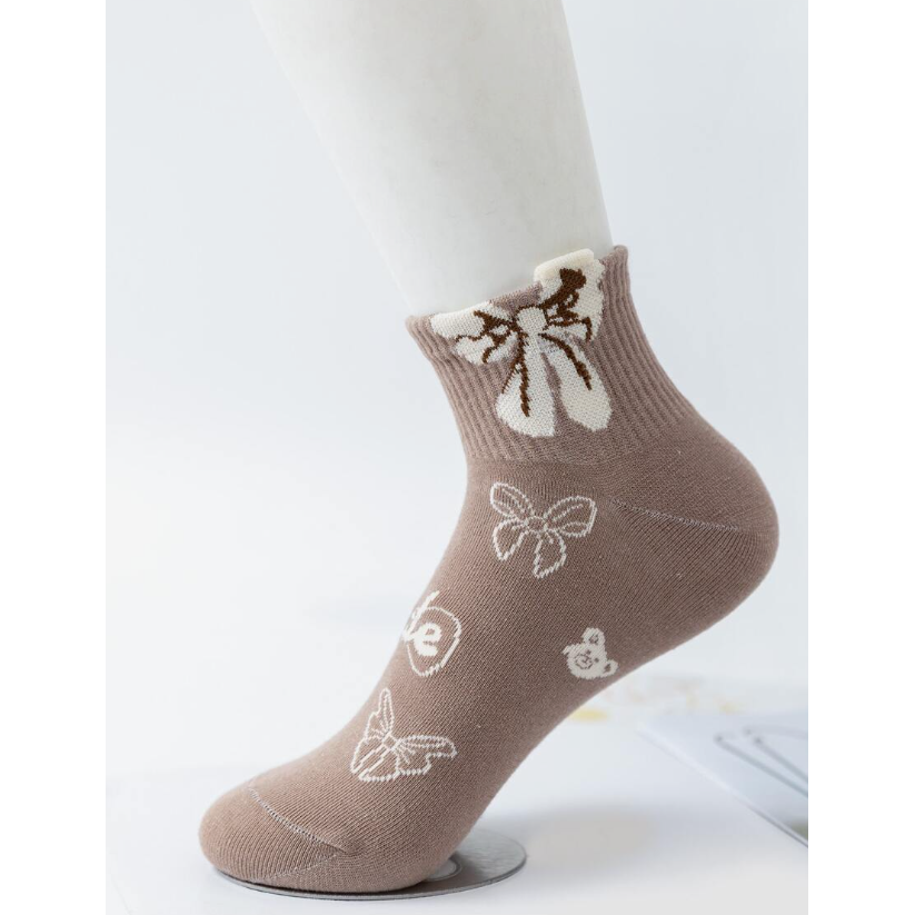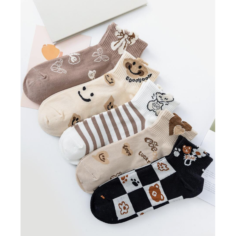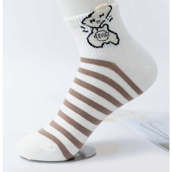 Lightweight Bear Character Socks Breathable Jacquard Design Striped Wine Print Compression Ankle Length for Spring Season Custom