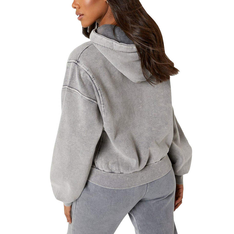 เสื้อฮู้ดแขนยาวสำหรับผู้หญิงเสื้อฮู้ดผ้าซักกรดสำหรับผู้หญิงน้ำหนักเบาออกแบบโลโก้ได้ตามต้องการ