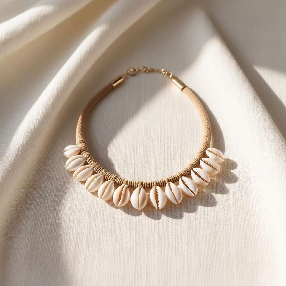 โชคเกอร์แฟชั่นผ้าฝ้ายโบฮีเมียนน้ำหนักเบาสร้อยคอชิ้นใหญ่พร้อมเปลือกด้ายสำหรับชายหาดหนีจากแบรนด์บูติก