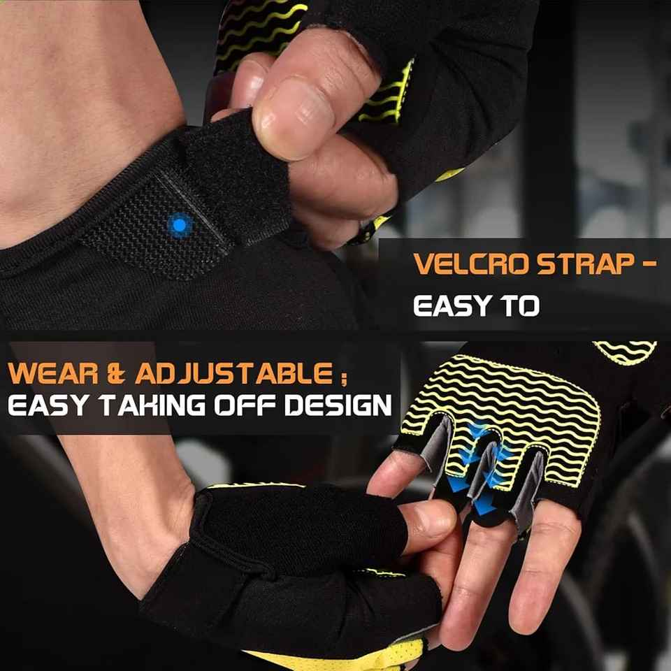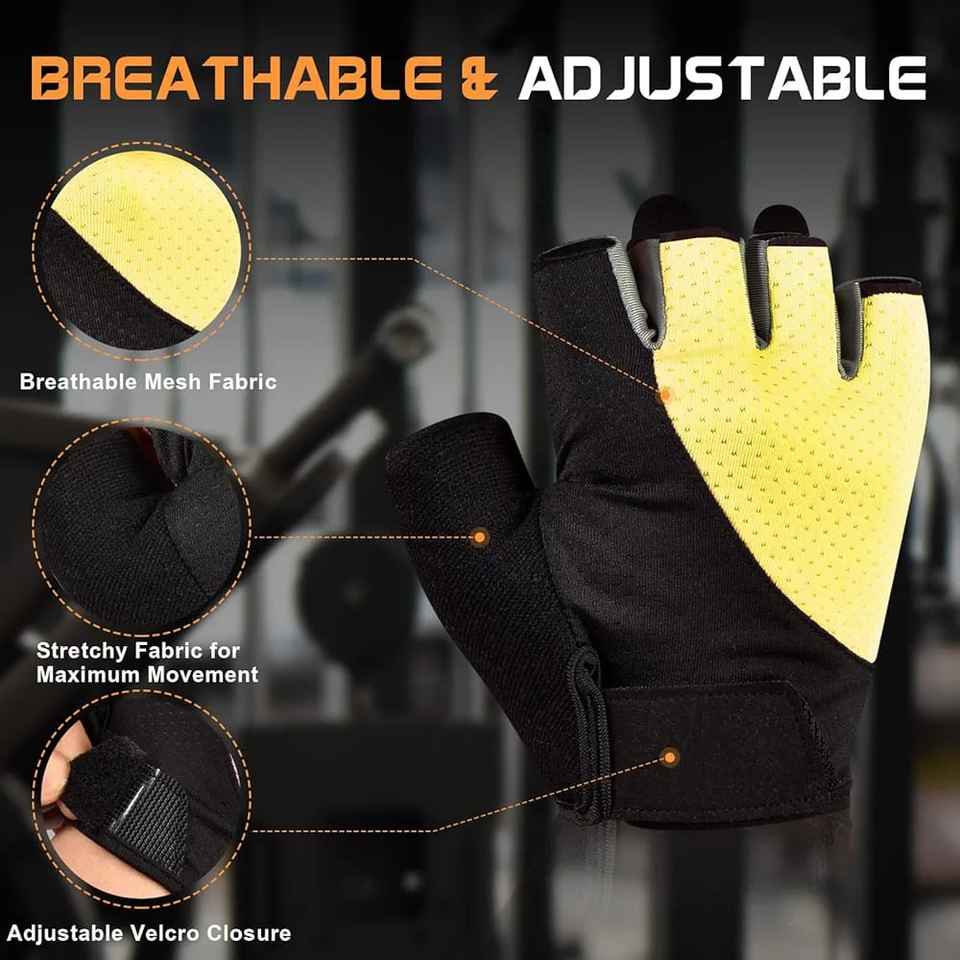 คุณสมบัติ:ไม่ลื่น, สายรัดข้อมือปรับได้, Hand Grips, น้ำหนักเบา, ระบายอากาศ, ความชื้นwicking, Half Finger/Fingerless