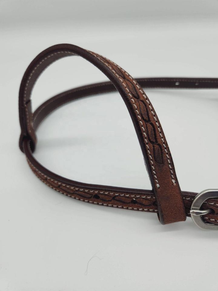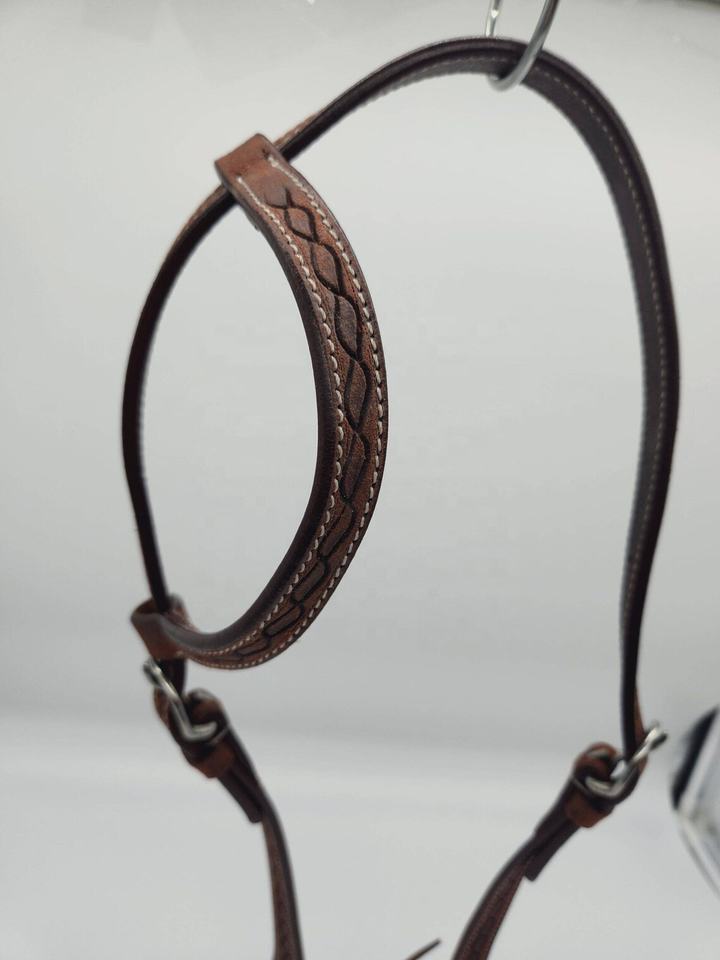 บังเหียนหนังสีน้ำตาลน้ำหนักเบาแบบหูเดียว แกะสลักด้วยมือสำหรับชุดอุปกรณ์ขี่ม้าแบบตะวันตก