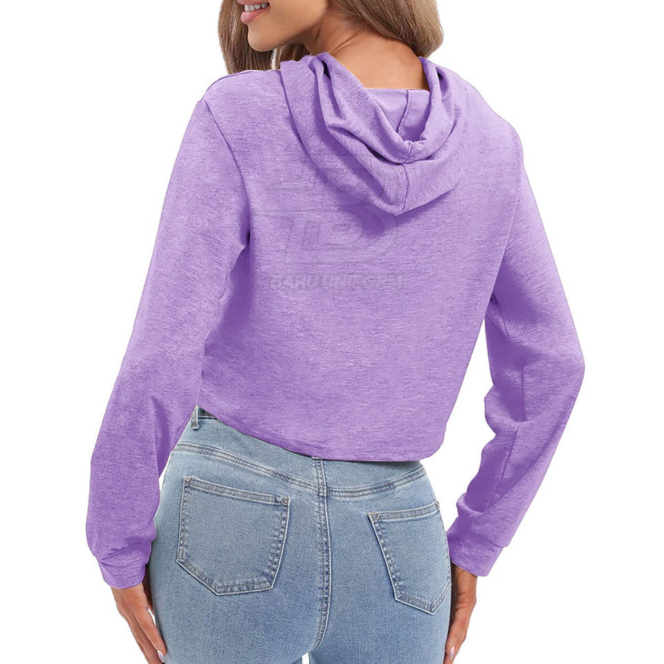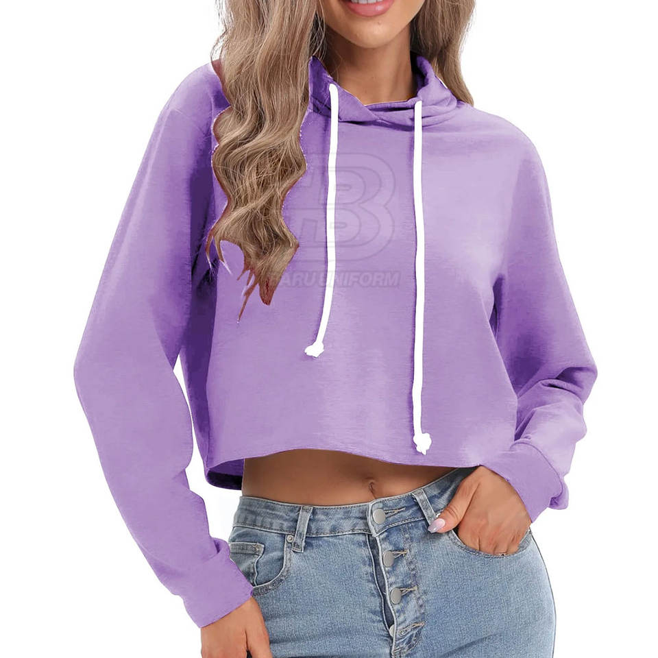 เสื้อฮู้ดครอปท็อปผู้หญิงสไตล์ลำลองน้ำหนักเบาสำหรับฤดูหนาว ระบายอากาศได้ดี สีสันปรับแต่งได้ คุณภาพดีที่สุด โลโก้ปรับแต่งได้ ตำแหน่งด้านหน้า