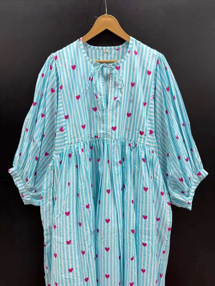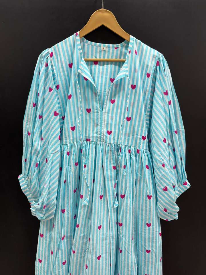 เดรสมิดิแต่งพู่ลำลองผ้าฝ้ายพิมพ์ลายคลาสสิกน้ำหนักเบาสำหรับโอกาสแบบดั้งเดิมและทันสมัยจากอินเดีย