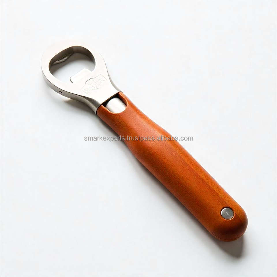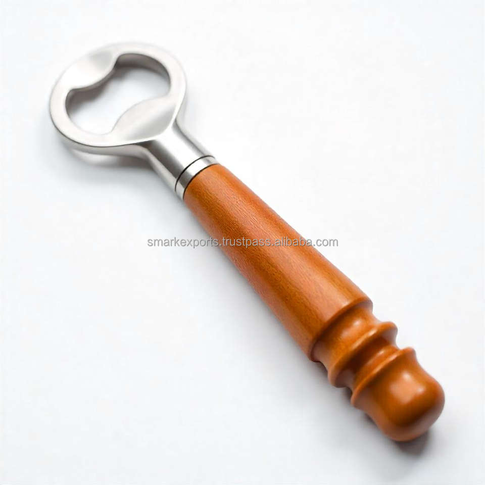 ที่เปิดจุกขวดมือจับไม้ขนาดกะทัดรัดน้ำหนักเบาพร้อมปลายโลหะที่เพรียวบางเพื่อให้ใช้งานได้ง่ายในบาร์ที่บ้านและกิจกรรมกลางแจ้ง