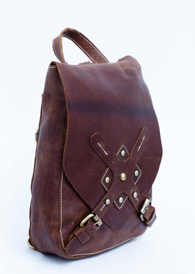 กระเป๋าเป้สะพายหลังหนังน้ำหนักเบา, กระเป๋าหนังแฮนด์เมดหนังสีน้ำตาลขนาดเล็กสำหรับผู้หญิงกระเป๋าเป้สะพายหลังความจุเดินทางกระเป๋าบอล