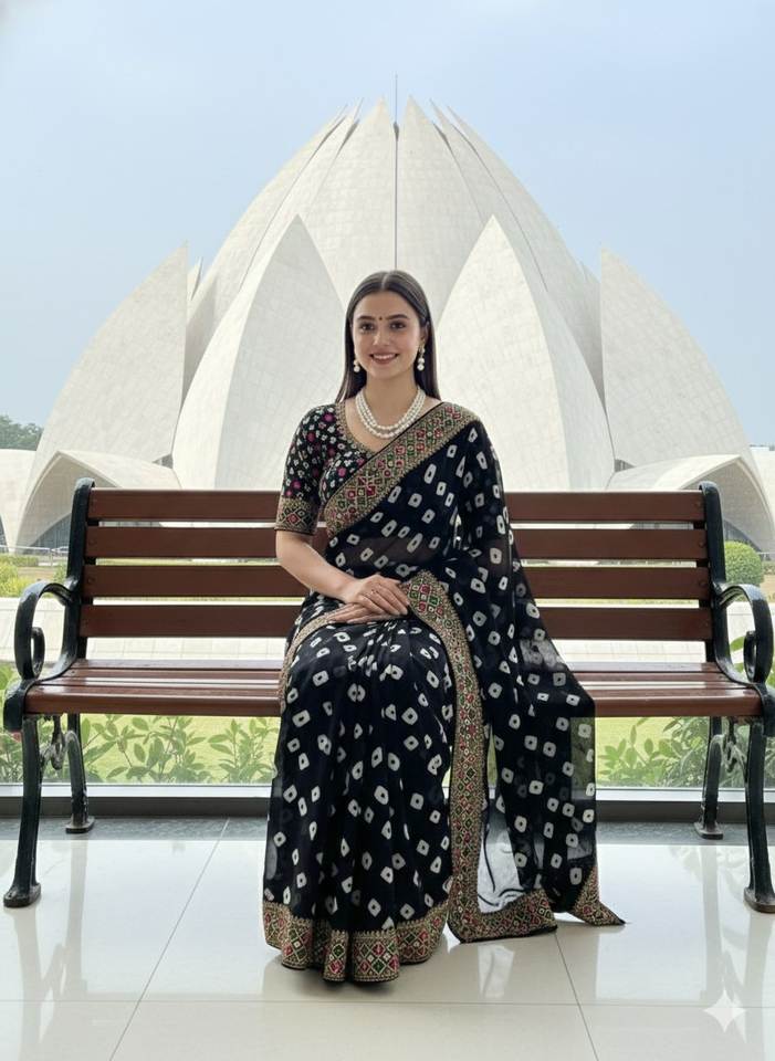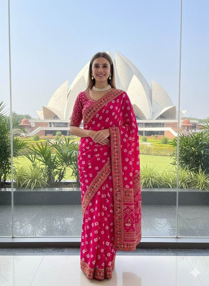 ผ้าซารี 1 ตัวพร้อมเสื้อที่ไม่ได้เย็บ