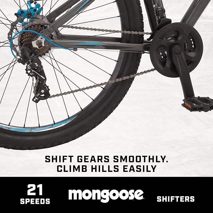 จักรยานเสือภูเขาน้ำหนักเบานักสำรวจ21สปีดสำหรับผู้ชายและผู้หญิงดิสก์เบรก & ช่วงล่างสีแดง/สีดำ
