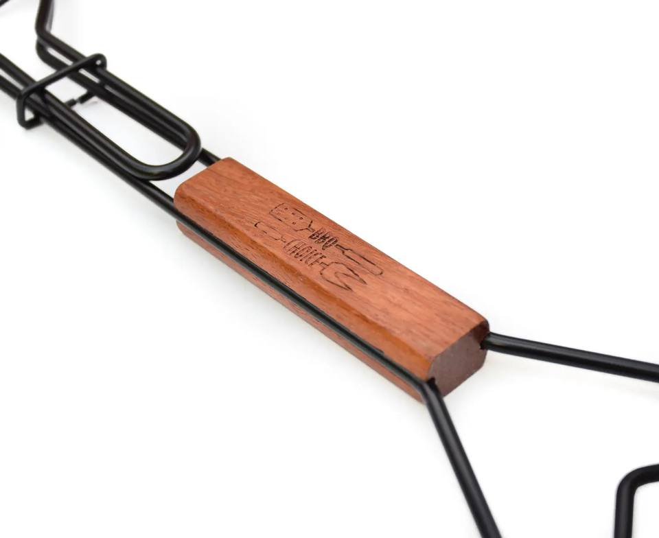 ตะกร้าย่างปลาน้ำหนักเบาไม่ติดตะแกรงตะแกรงย่างบาร์บีคิวมีด้ามจับไม้แข็งแรงทนทานสำหรับการตั้งแคมป์และบาร์บีคิวกลางแจ้ง