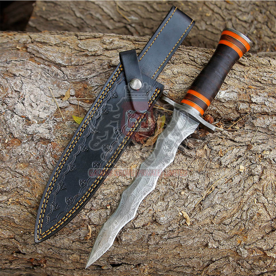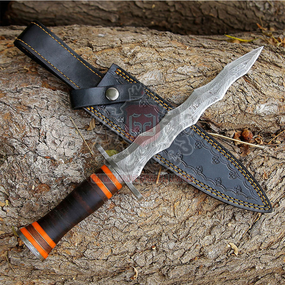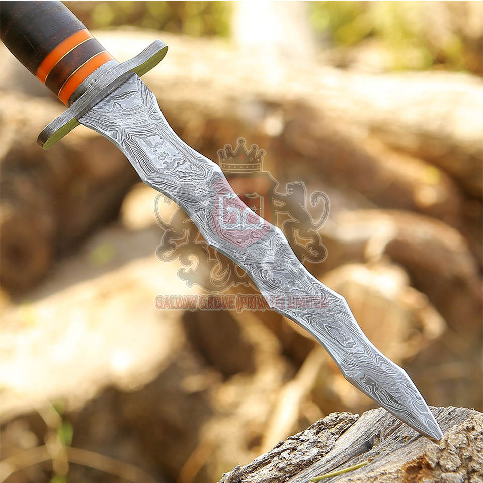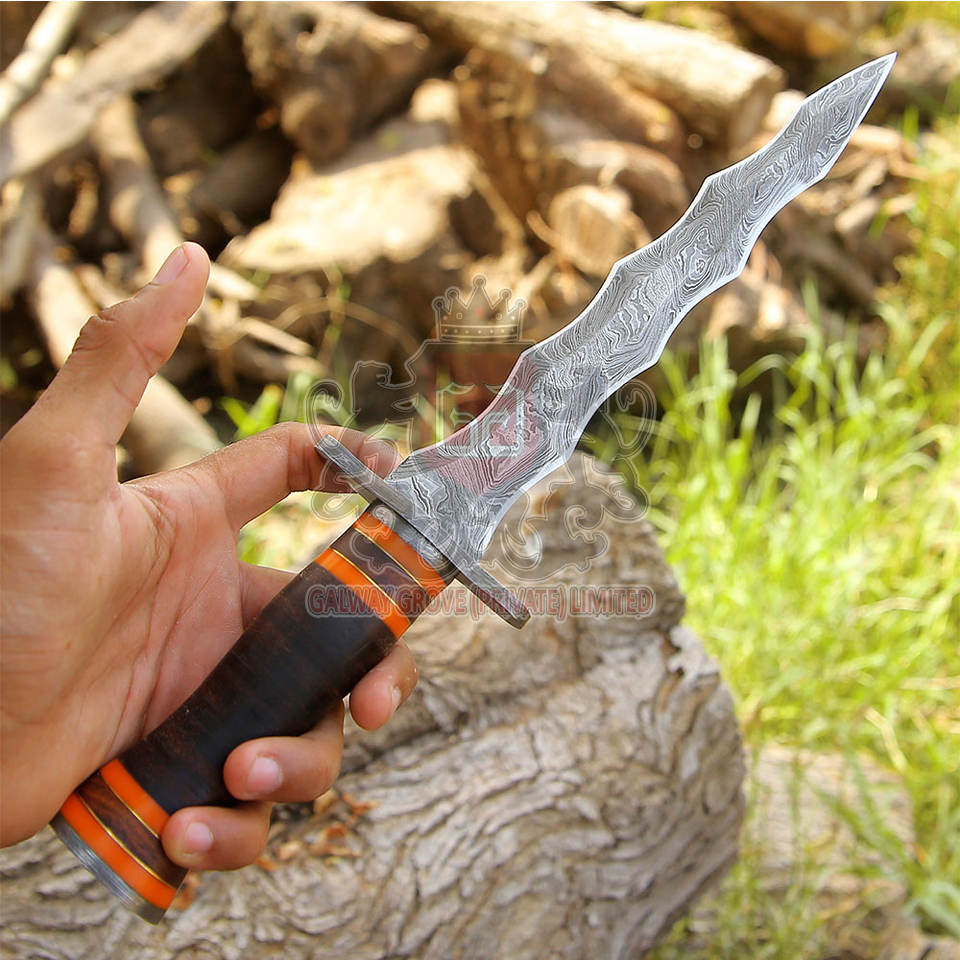 มีดล่าสัตว์เหล็กดามัสกัสแบบใบตาย น้ำหนักเบา ปลายแหลม คมตรง ด้ามไม้เกรดอุตสาหกรรม รับผลิตตามแบบ OEM