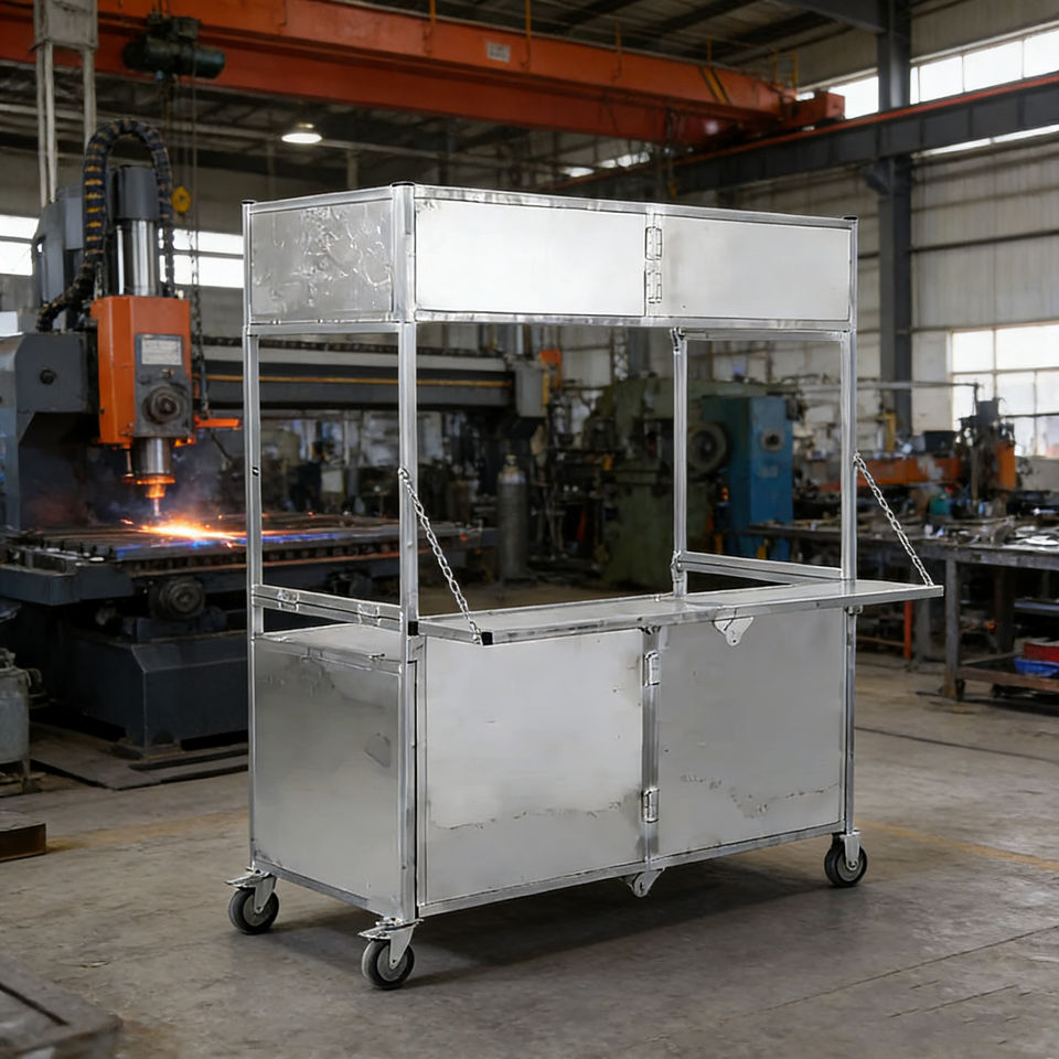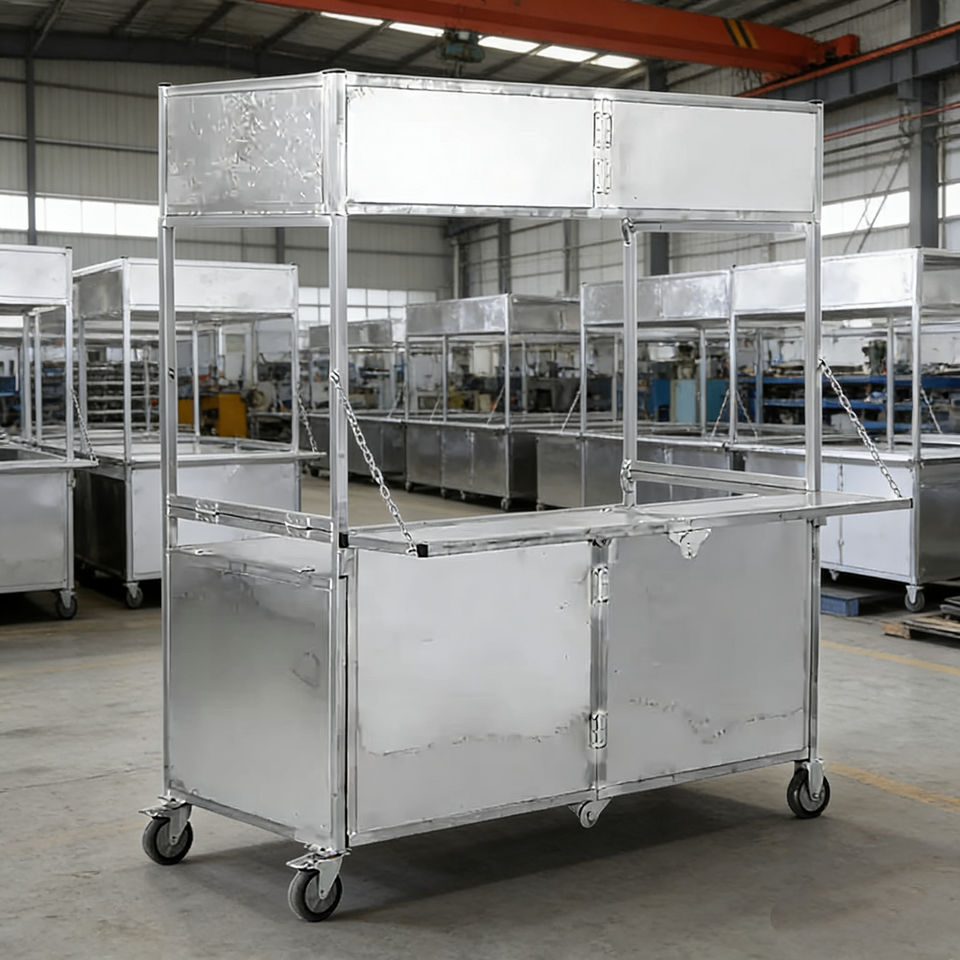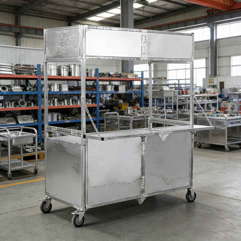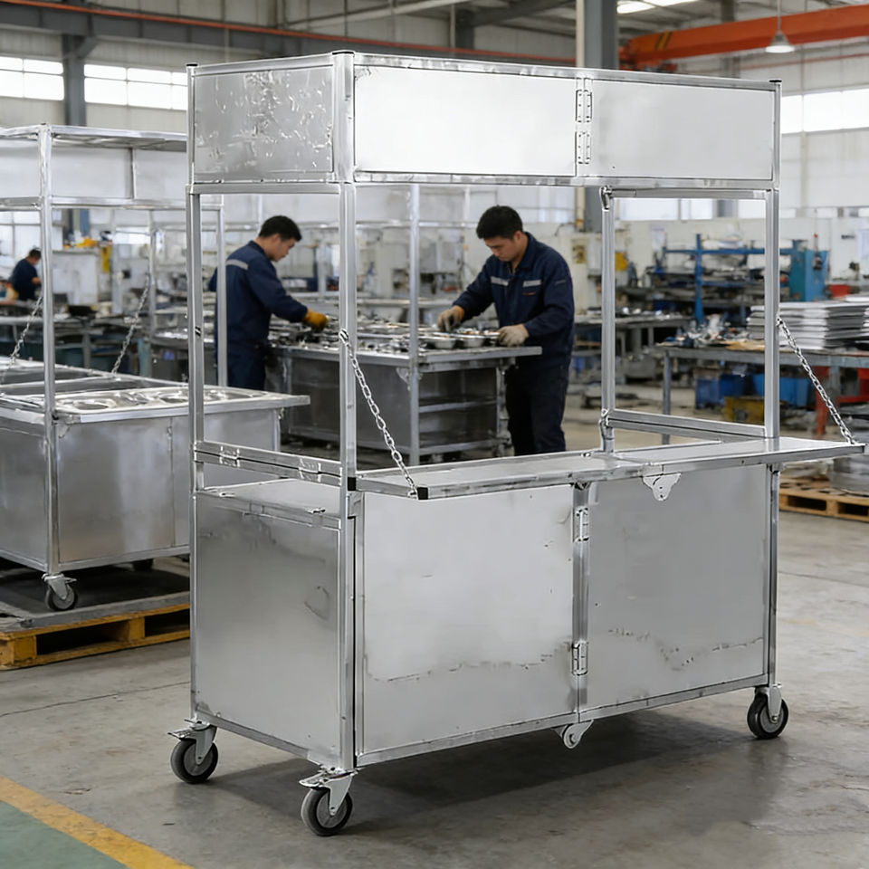 Lightweight Foldable Stainless Steel 4-Wheel Snack Trailer Coffee Ice Cream Hotdog Candy Chips Mobile Vending Food Truck Rust