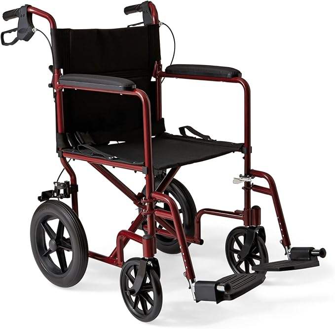 รถเข็นขนส่งน้ำหนักเบาพับได้มีเบรกมือและล้อขนาด12นิ้วกรอบสีแดงเบาะสีดำ