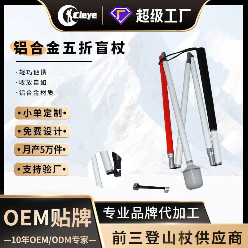 ไม้เท้าพับได้น้ำหนักเบา สีขาว 3 ท่อน ทำจากอลูมิเนียมอัลลอยด์ สำหรับคนตาบอด มีหรือไม่มีไฟ