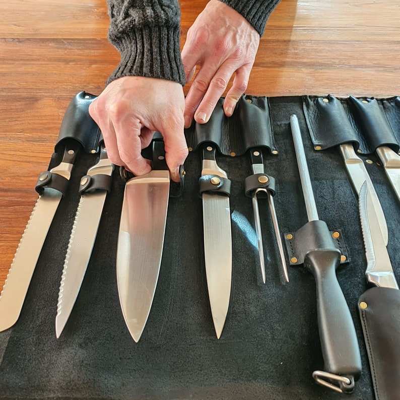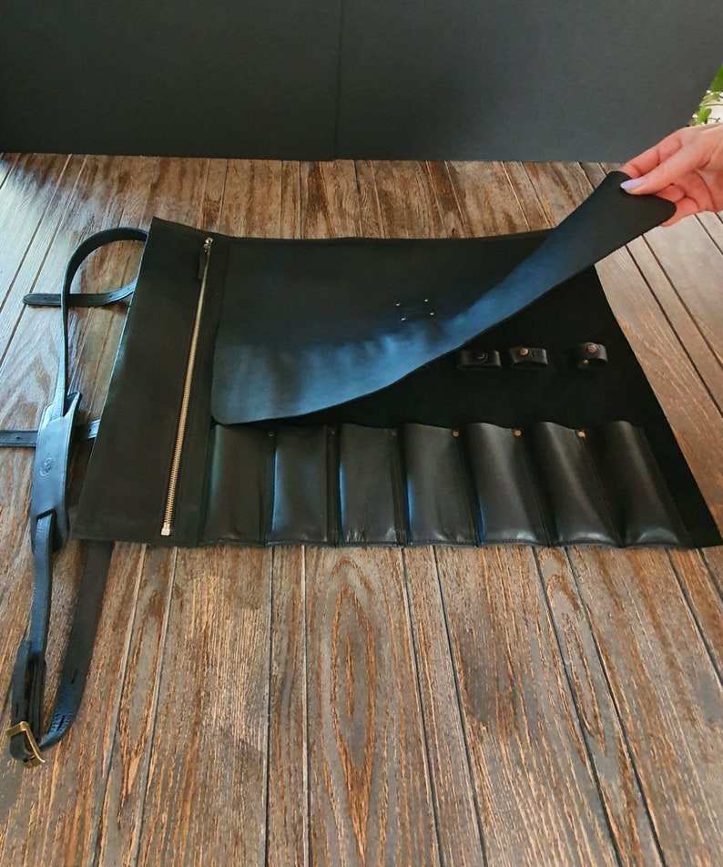 กระเป๋าใส่มีดเชฟหนังแท้สีน้ำตาลช็อกโกแลตคุณภาพพรีเมียม น้ำหนักเบา 10 ช่อง สำหรับมืออาชีพ ทำด้วยมือ รุ่น LKR-0303