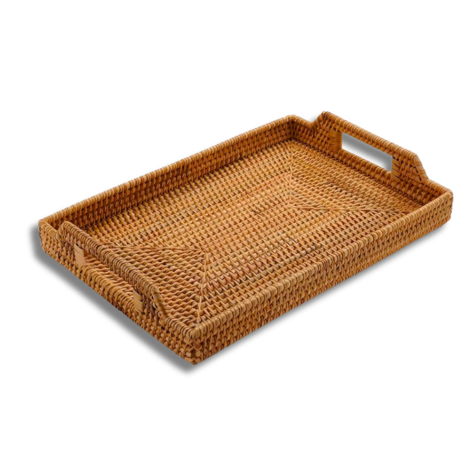 ตะกร้าหวายทำด้วยมือน้ำหนักเบาถาดหวายพร้อมตัวเลือกปรับแต่งได้ทำในเวียดนามตกแต่งบ้าน