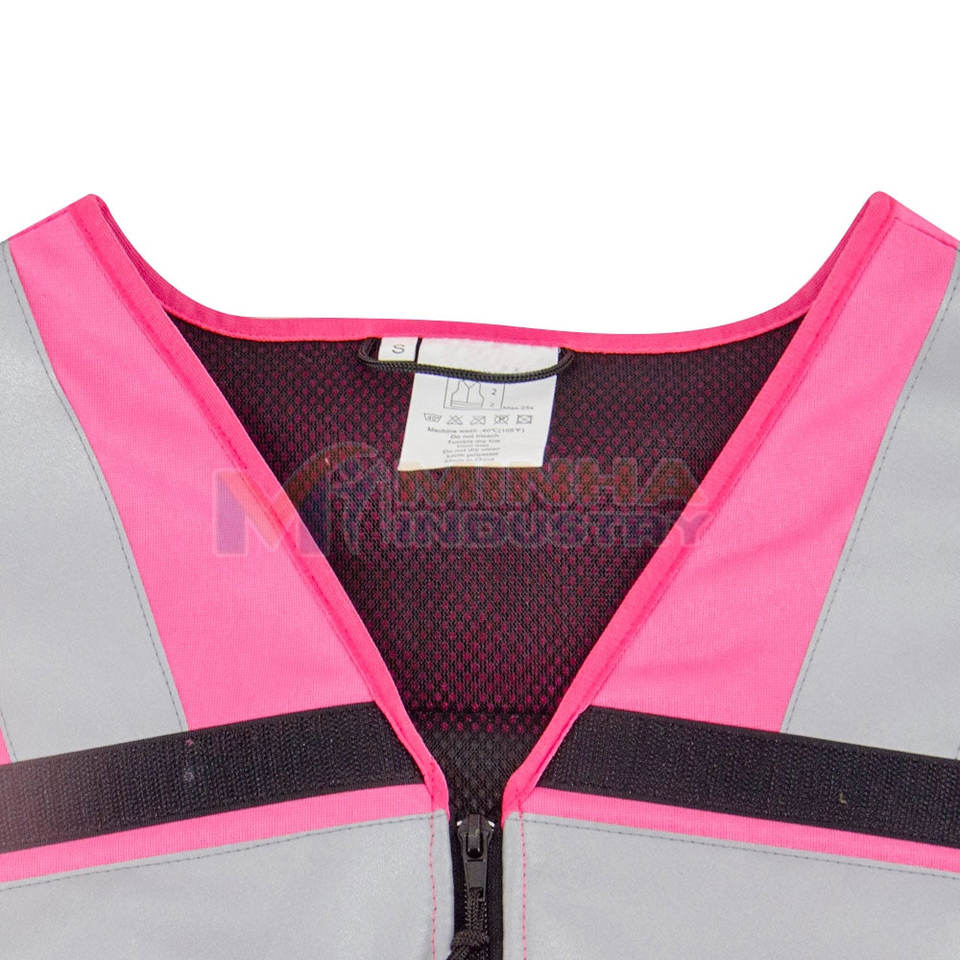 เสื้อกั๊กสะท้อนแสงน้ำหนักเบาสำหรับนักวิ่งและนักวิ่งเพื่อความปลอดภัยในการจราจรเสื้อกั๊กนิรภัยสะท้อนแสงสีชมพูและสีดำ
