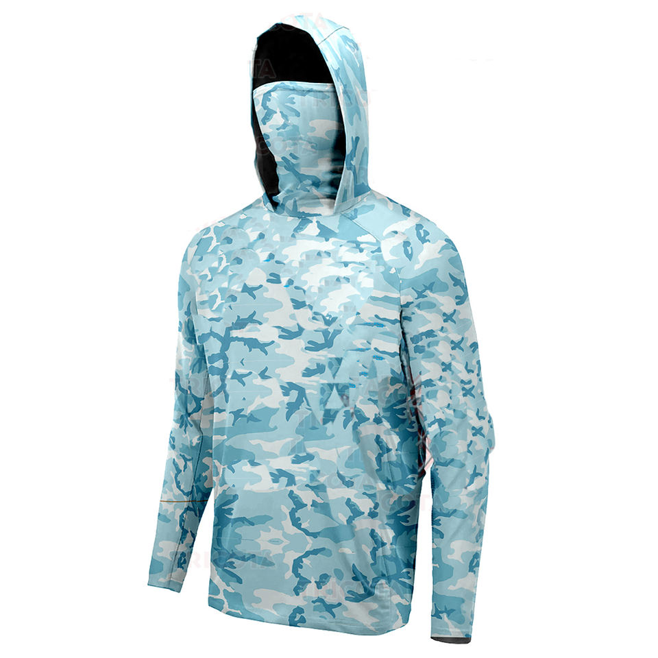เสื้อตกปลาแขนยาวน้ำหนักเบามีฮู้ดลูกปัดโพลีเอสเตอร์กันน้ำพิมพ์ซับลิเมชันตามสั่ง