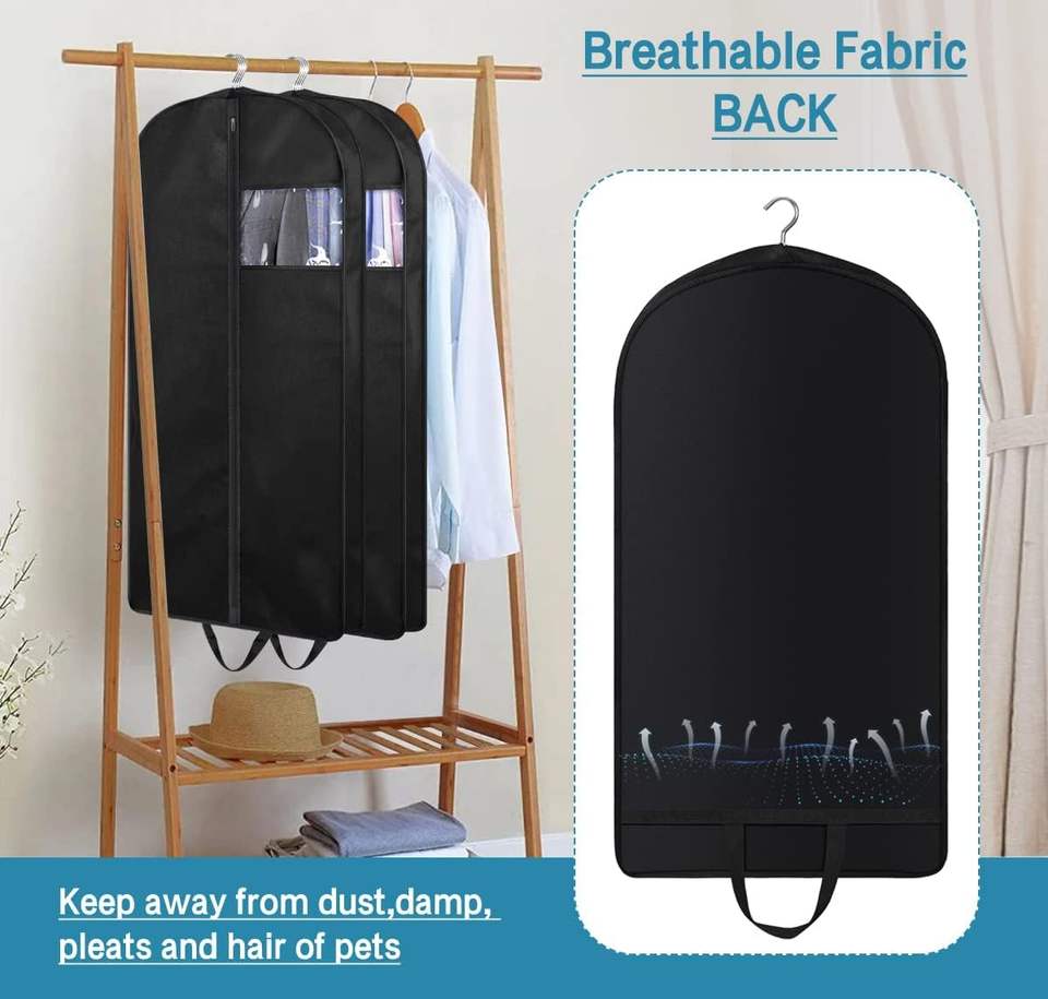 Lightweight Luxury Black Eco Friendly Reusable Suit Cover Garment Bag Wholesale Custom Logo Suit Cover Garment Bag With Zipper
