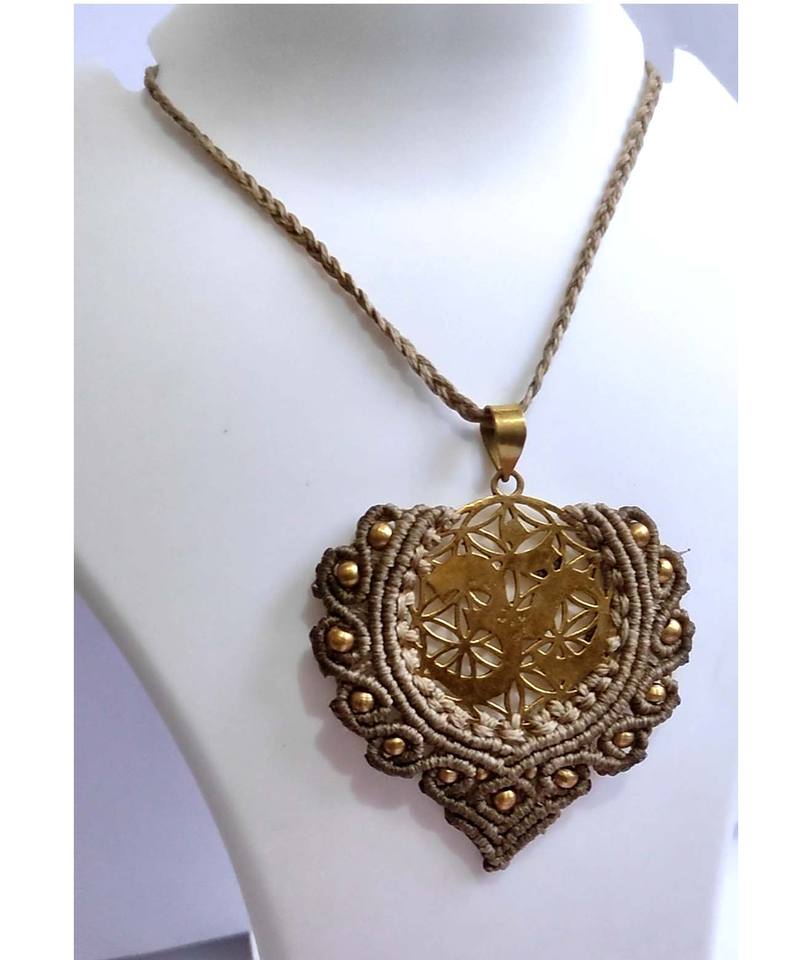 Lightweight Macrame Necklace with Om Shape Brass Findings Happy New Year Crystal Pendants Charms Small Brass Beads New Year Gift