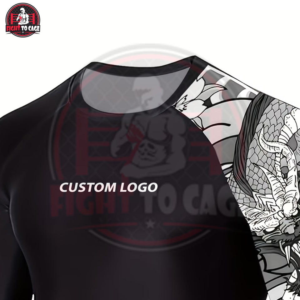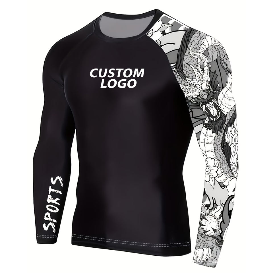 เสื้อรัดกล้ามเนื้อ MMA น้ำหนักเบา พิมพ์โลโก้ได้ตามต้องการ คุณภาพสูงสำหรับผู้ชาย ราคาคุ้มค่า แห้งเร็ว แขนยาว ผ้า 220 กรัม